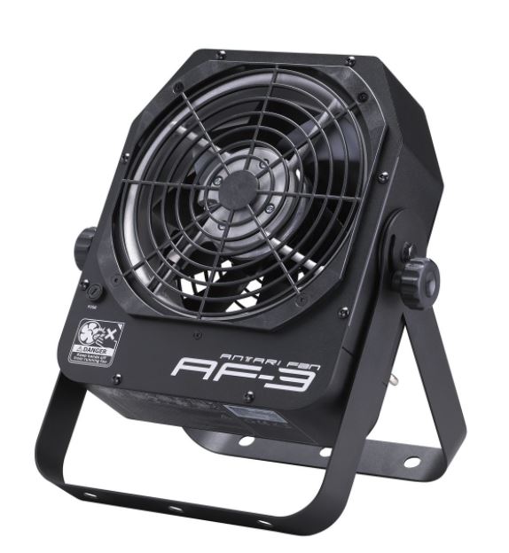 The Antari AF-3 is a compact, DMX-controllable special effects fan designed for stage, film, and live productions. Whether used alone for subtle wind effects or paired with fog, haze, snow, or bubble machines, it enhances coverage and realism for any performance or event.