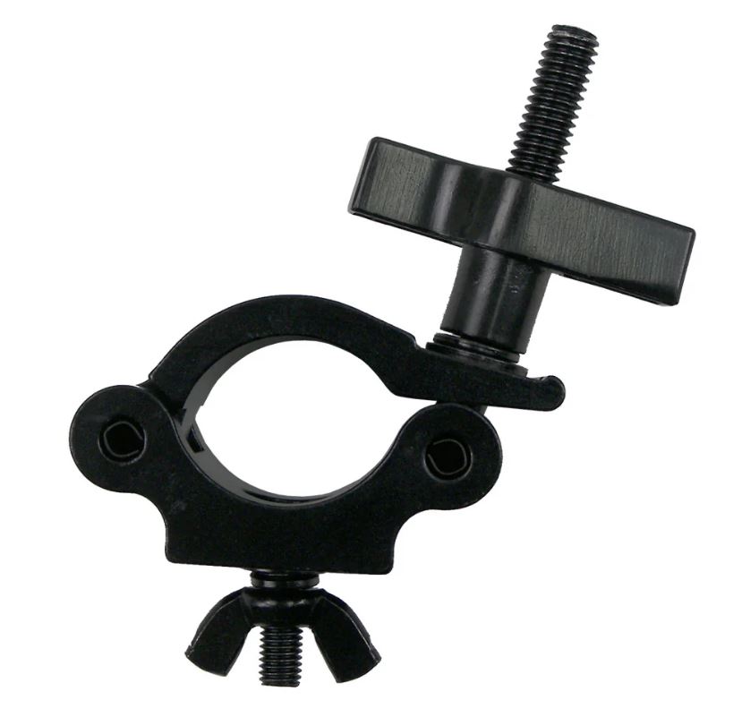 The Aluminium Pipe Clamp (38-51mm) is a heavy-duty clamp designed to support pipes with a diameter of 38-51mm. Made from Aluminum 6061-T6, it offers a Working Load Limit (WLL) of 500kg, making it suitable for rigorous applications. The clamp features a black anodized finish for durability and corrosion resistance. It’s equipped with an M10 x 40 bolt and weighs 0.5kg, providing both strength and reliability for your lighting or rigging needs.