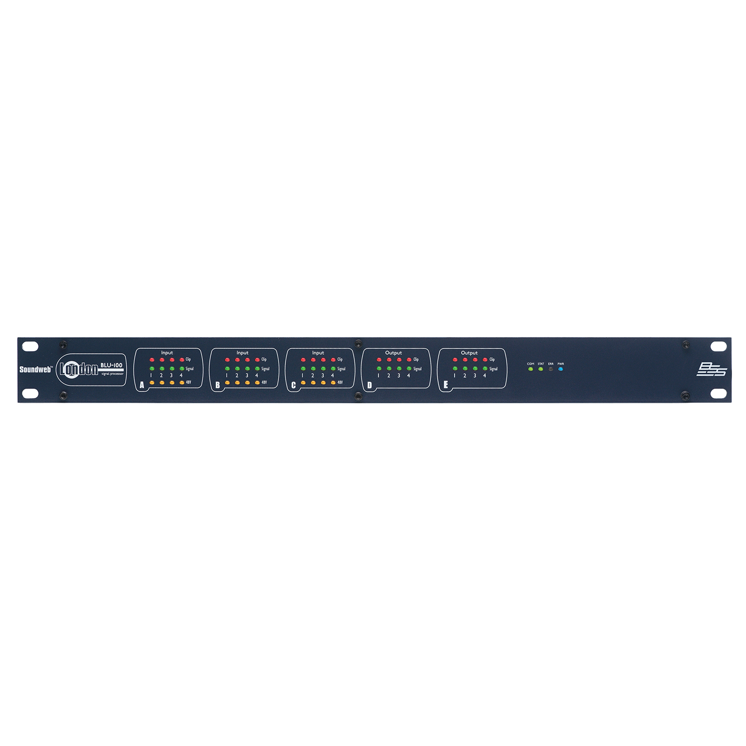 Analog Inputs provide software configurable gain in 6dB steps up to +48dB per channel and software selectable Phantom Power per channel.Phantom Power, Signal Present and Clip information per channel is easily accessible, without the requirement for a PC, from clear front panel LED indication. A bi-directional locate function allows devices to be identified both from and within HiQnet Audio Architect.12 Control Inputs and 6 Logic Outputs allow the BLU-100 to be integrated with GPIO compatible devices. The Soundweb London Interface Kit, comprehensive documentation which details how Soundweb London systems can be integrated with third party control systems, is included within the installation of HiQnet Audio Architect.