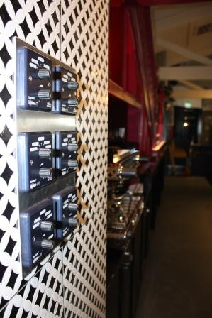 Although the zone control for the audio and video is very high-tech, as is all the processor-controlled digital gear behind the scenes, Edwards saw no reason for visible LCD touchscreens that could detract from the heritage feel of the pub.  Instead Edwards proposed a physical source selector and volume control on the wall behind the bar that is easy to access and use. A part timer could operate the proposed system with no training. Stephen comments, “It is so simple even my brother can use it which means its awesome!”
