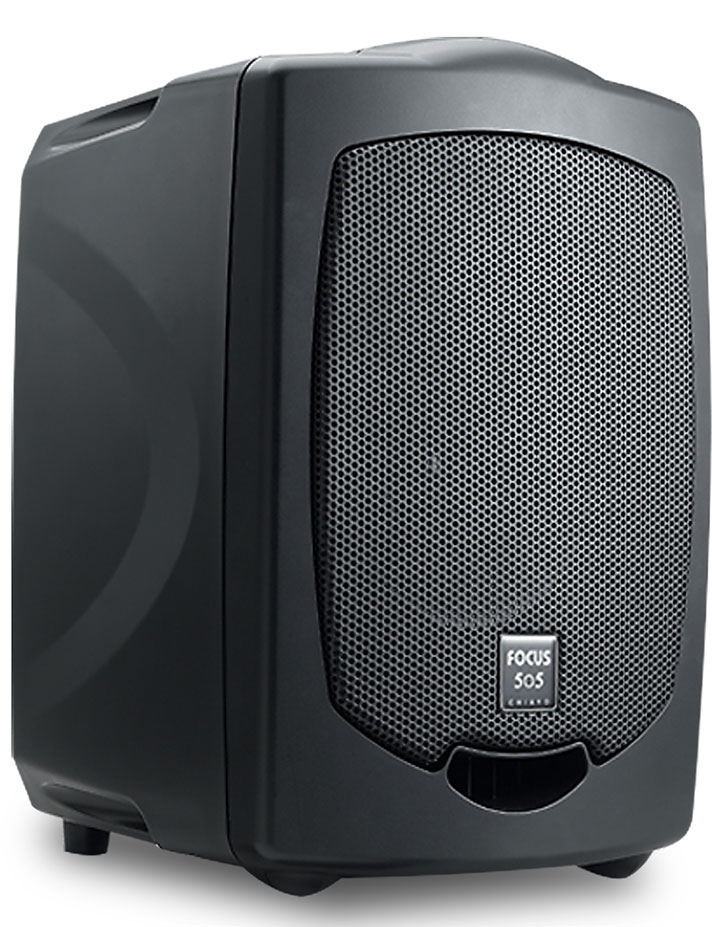 Active 50w Powered Focus 505 Speaker with one Aux input. Operates via mains and/or built-in rechargeable batteries. This is a portable powered extension speaker to match the Focus portable sound systems, but also functions as a stand-alone powered speaker for anything else with a line level output (music, PC, monitor, AV system, TV etc). The sound quality is superb with hi-fi characteristics 50Hz - 20kHz and with the very low distortion figures we can confidently say these are the best sounding portable PA systems in their class.