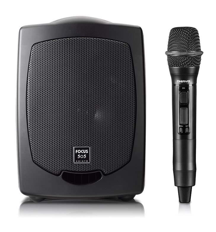 The portable PA system bundle with the Focus-505 Portable PA and a Wireless Handheld Microphone. It is a complete wireless portable PA system ready to go.