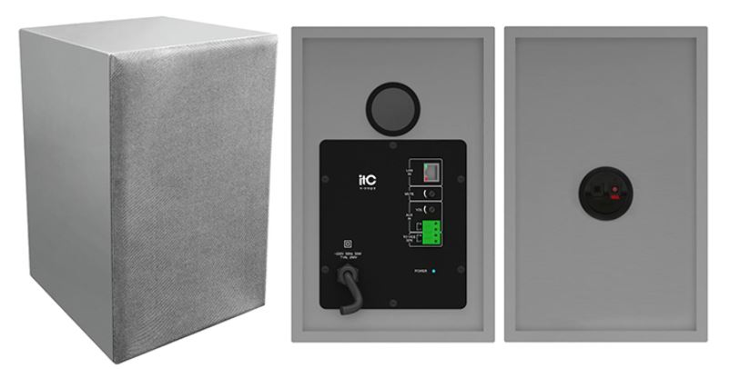 IP Network speaker. Comes as a pair with one active and one passive speaker. Dual 10W amplifier built into the master. Connected to the network, this can receive the paging, alarm, bell and lockdown messages from the head office or scheduler, but also has an aux input so it can be used for classroom sound also.
