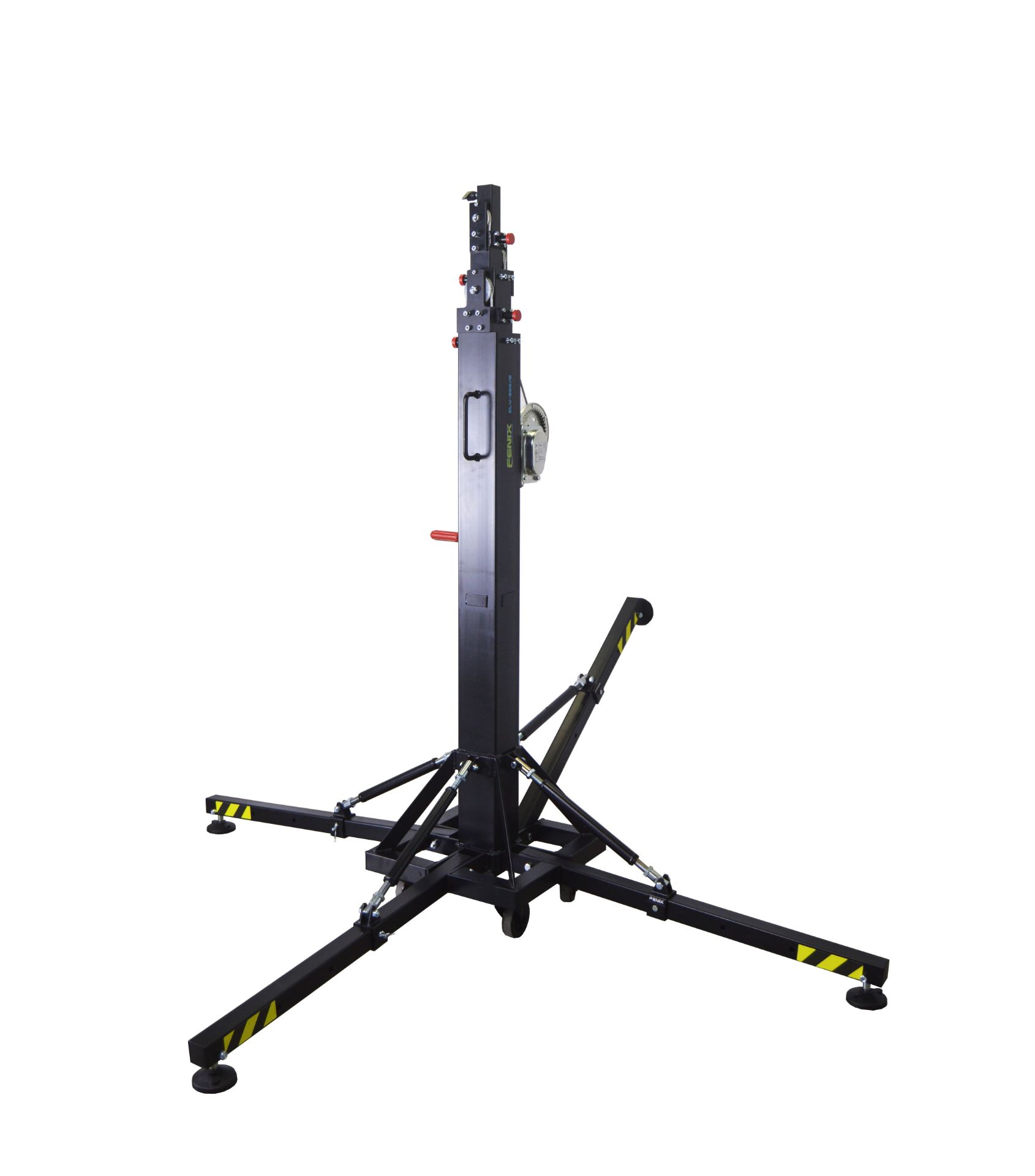 • A telescopic lifting tower made of steel with adjustable leg system