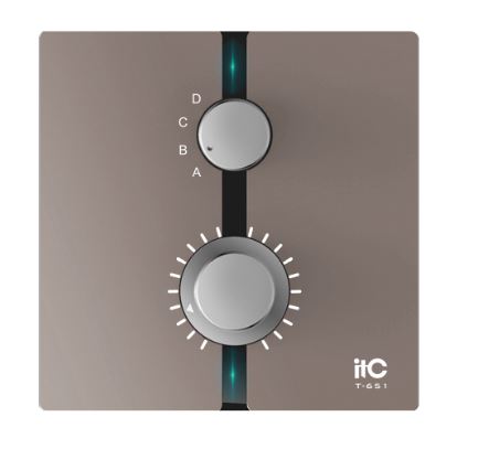 Wall mount zone select and remote volume control for UC-series amplifiers.